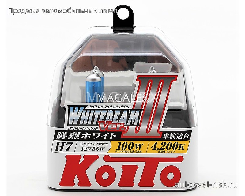 KOITO H7 12v55w PX26d (100w) Whitebeam 4200k (2шт.) BOX