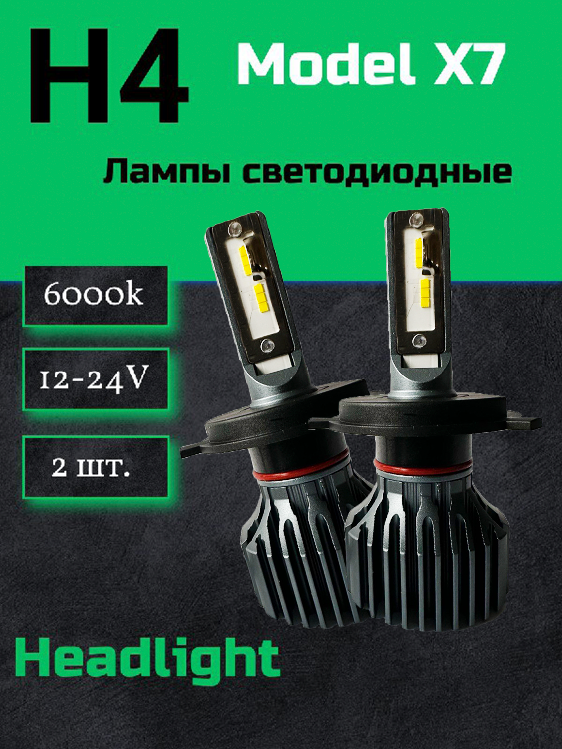 Светодиод X7 H4 6000k ( Hi/Low) 12-24v No Fan (2шт.) NEW